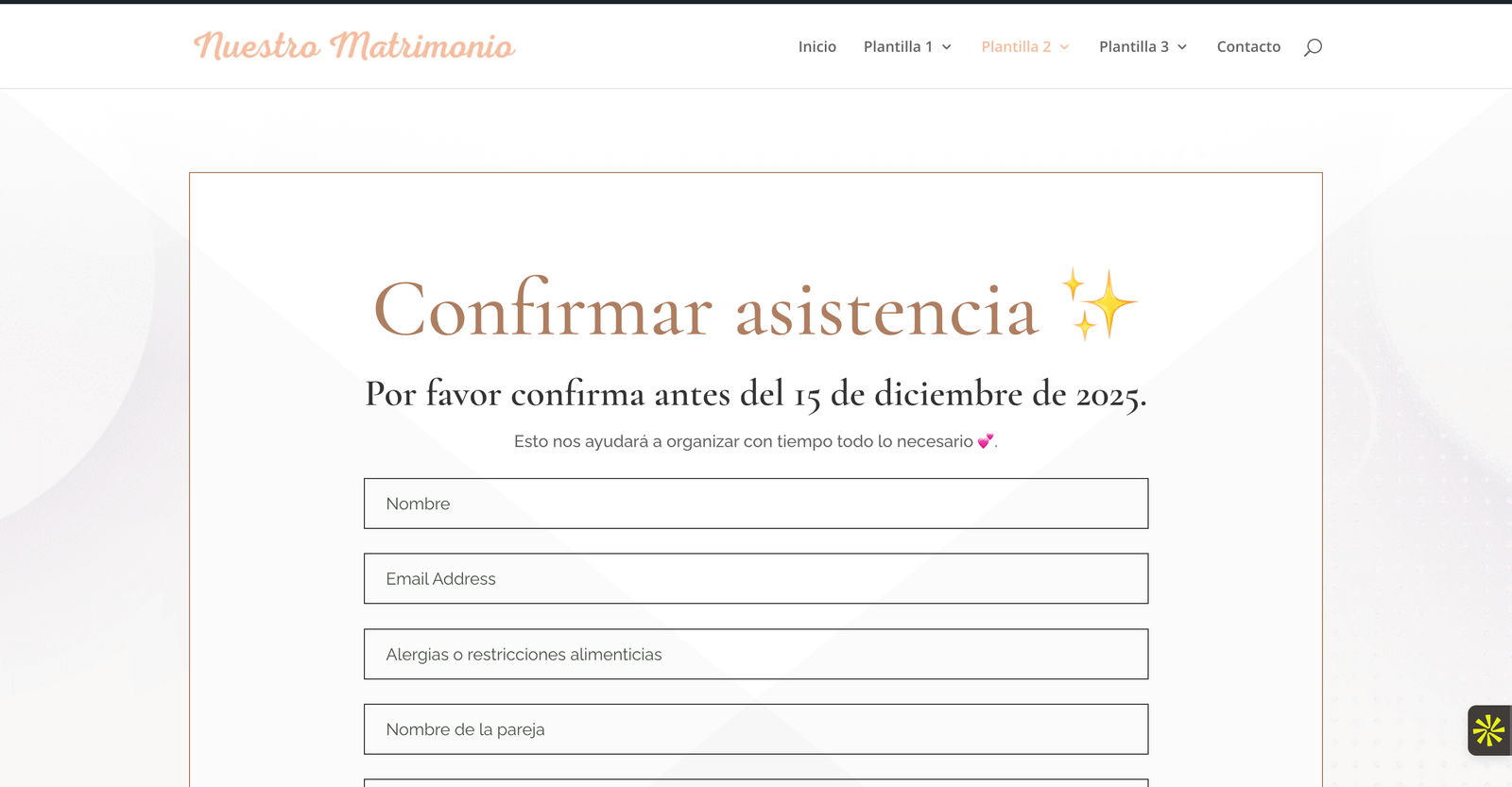 Confirma tu presencia y la de tu pareja de forma sencilla aquí.